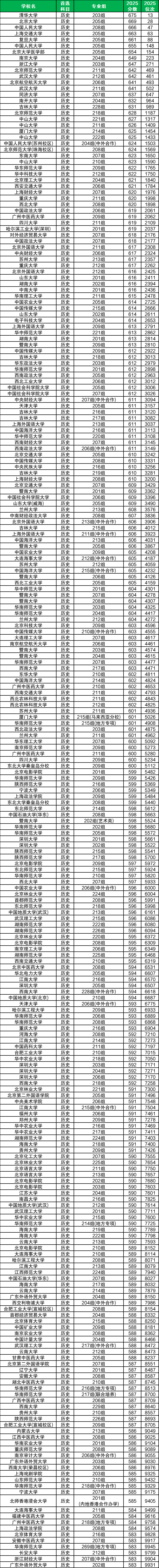 2025广东高考历史类排名一览表: