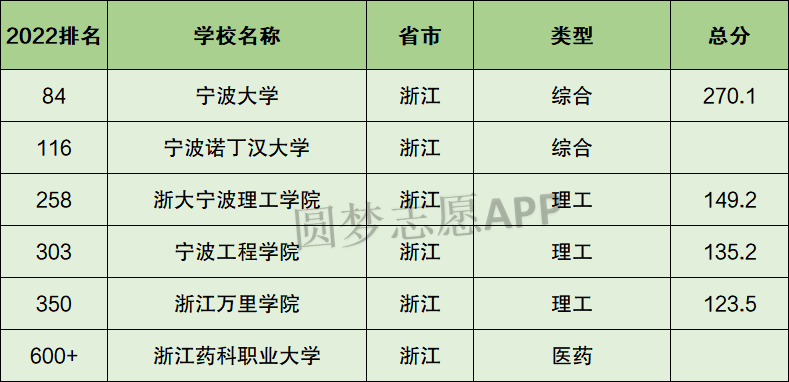 根据软科2023年中国大学总榜排名可知,宁波市内有6所本科大学进入全国大学前800强,这些大学均是宁波市内乃至全国都比较强的大学。具体入选名单及排名如下图: