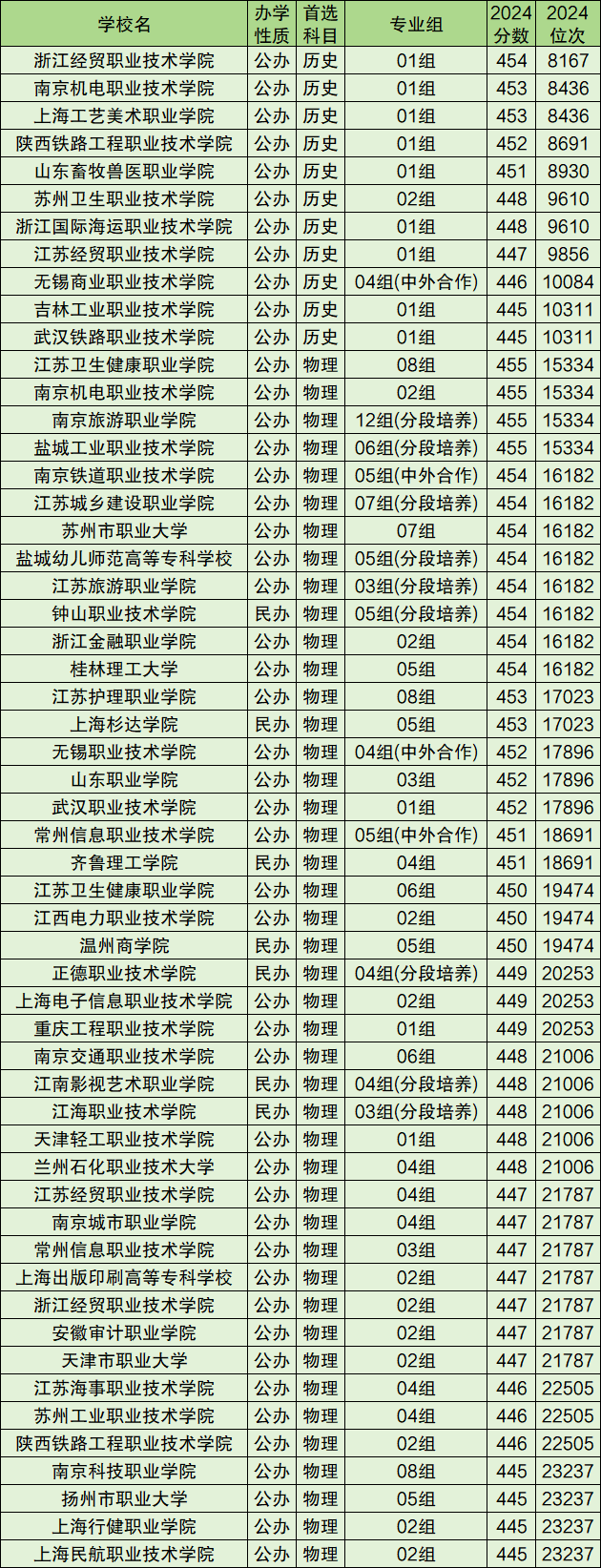 2024年江苏高考450分低于本科线,不管是历史类还是物理类,都只能报考专科批次录取的大学。