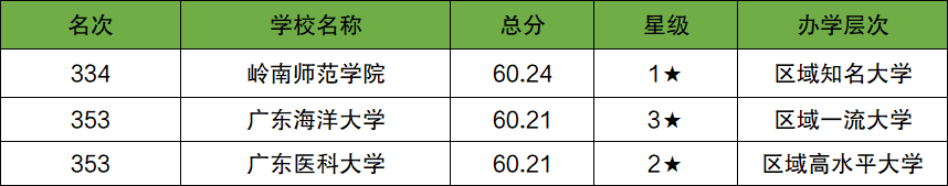 根据校友会2025年中国大学排行榜,湛江各大学排名前三的院校是: