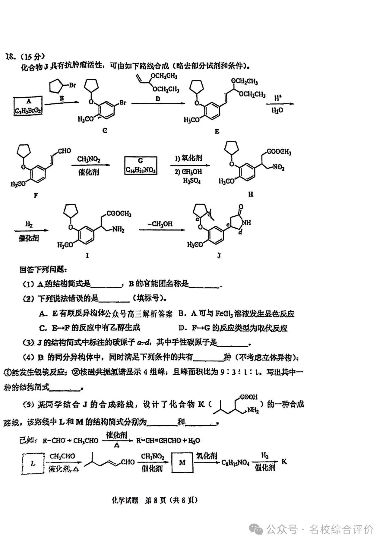 2025年陕西新高考适应性演练考试化学科目的答案详解还未公布,1月5日9:45考试结束后老师会及时收集整理,并在获取试卷和答案在本文第一时间更新,大家可以在考试结束后关注最新消息。