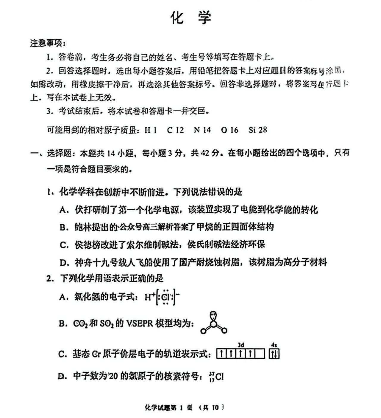 注意:因为本次新高考适应性考试物理、化学、生物、思想政治、历史、地理6门科目是由各省单独出题,所以各省除语数外科目以外,其余科目的试题都不一致,本文就只整理出陕西化学具体的试卷及答案,仅供陕西考生参考。