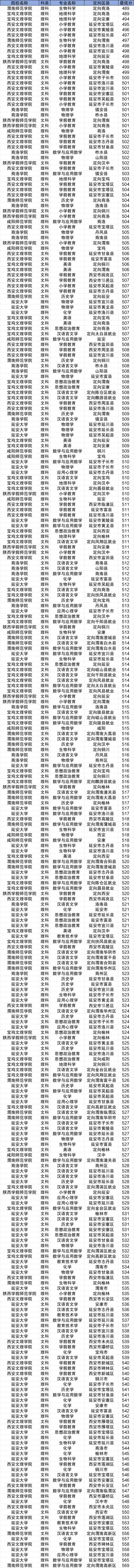 陕西地方公费师范生录取分数线完整版一览表(需滑动查阅):