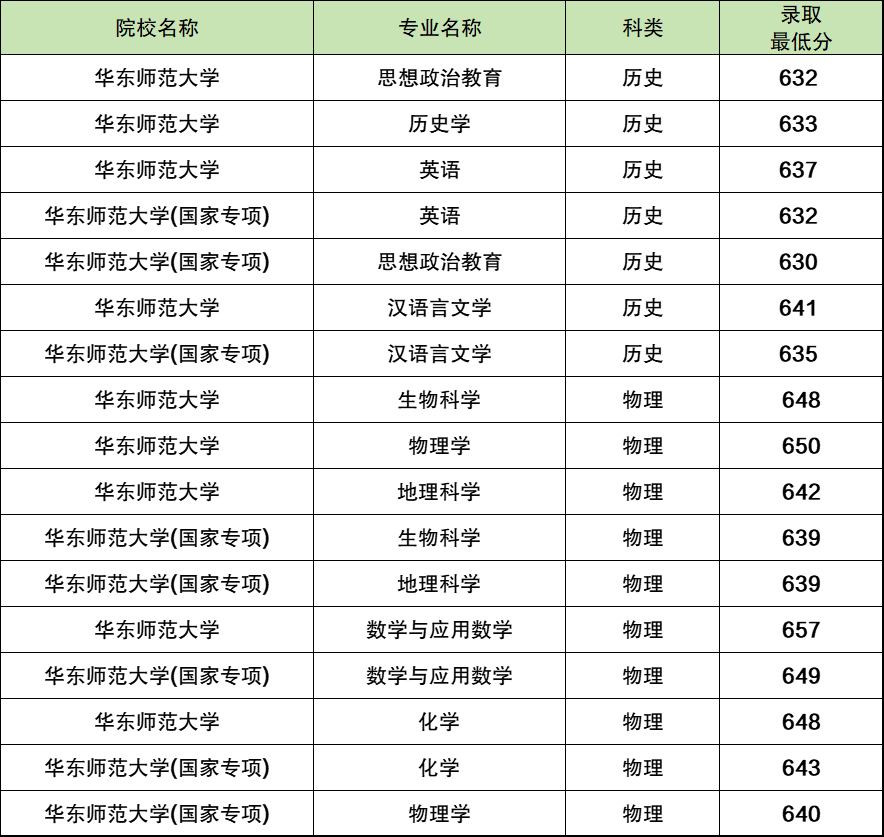 华东师范大学公费师范生在湖北最低录取分数线为历史类633分、物理类636分。