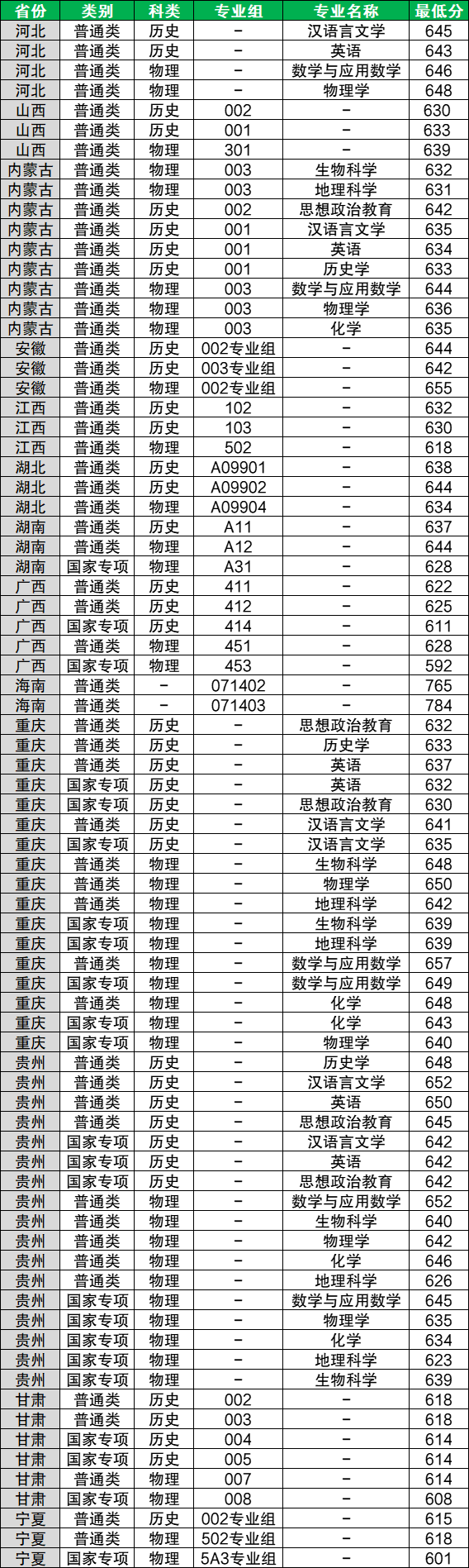 2025年华东师范大学国家公费师范生录取分数线已经公布,根据各省公布的提前批数据来看,华东师范大学公费师范生分数线为:山西最低历史类642分、物理类655分;宁夏最低历史类615分、物理类601分等。