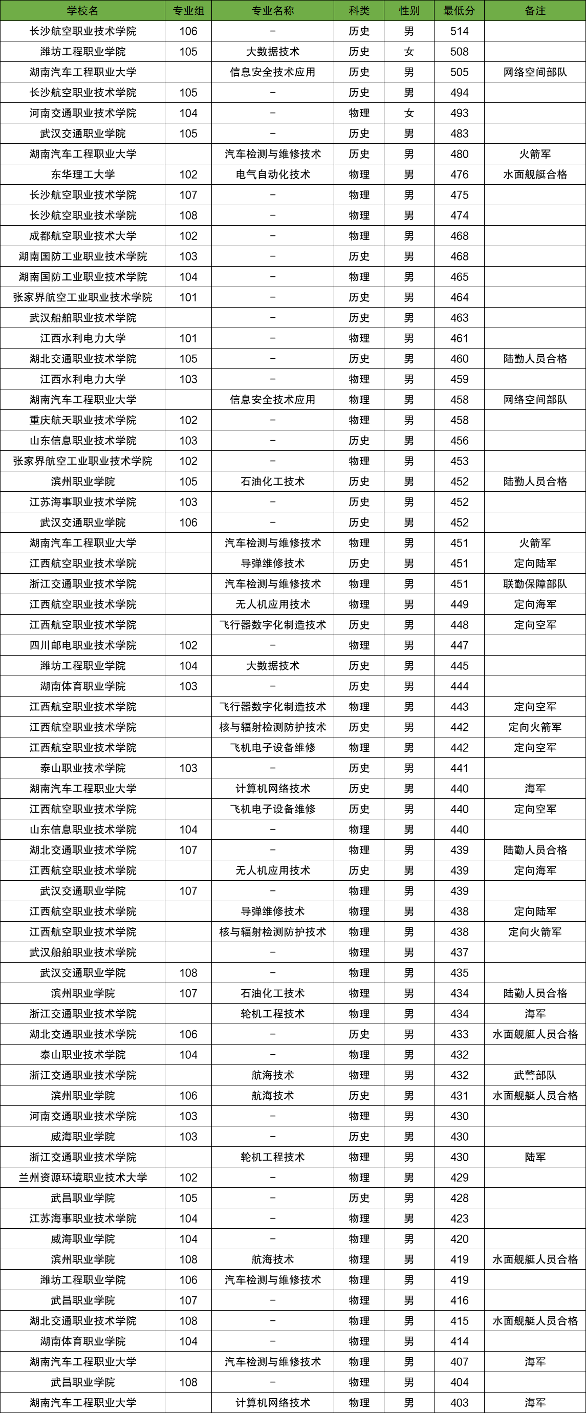长沙航空职业技术学院,103专业组(男生),最低分为474分;