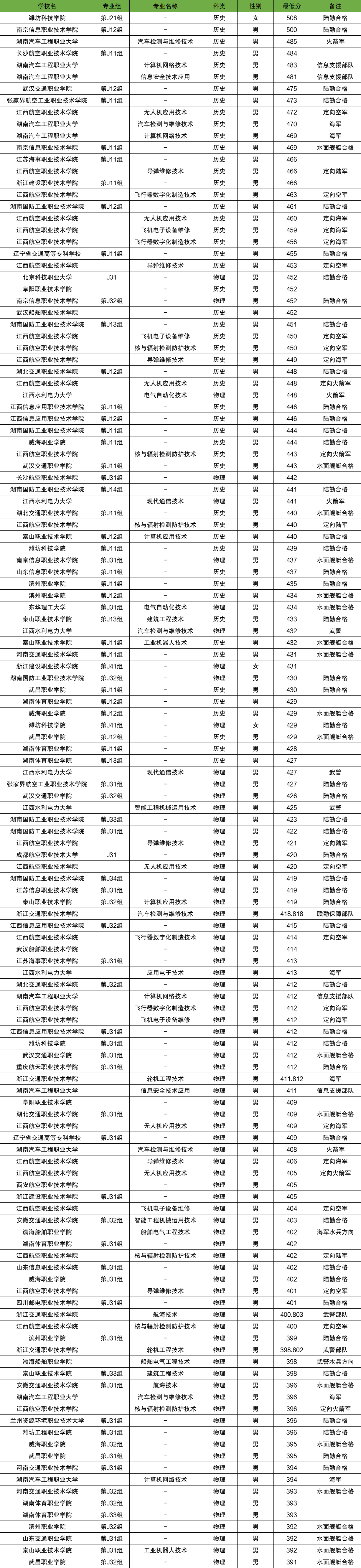 定向培养士官院校在江西物理类录取分数线较高的院校专业组有北京科技职业大学J31组、南京信息职业技术学院第J32组(452分);录取分数线较低的士官学校专业组为武昌职业学院第J32组(391分)。