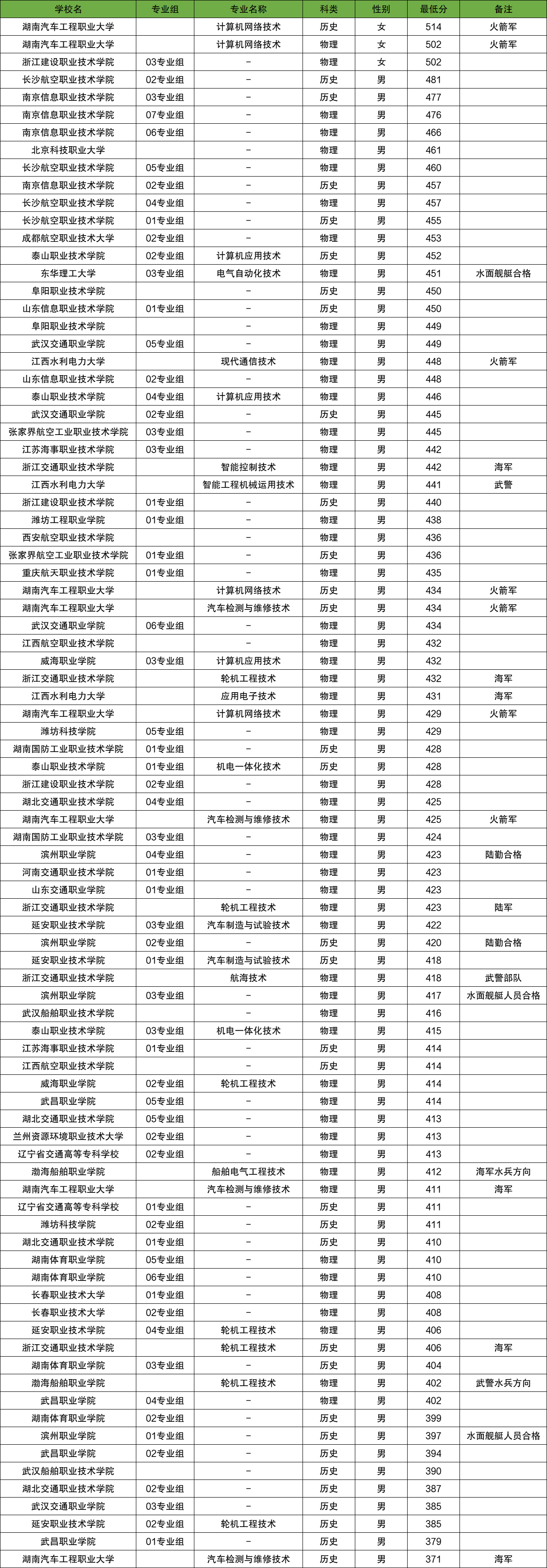 湖南汽车工程职业大学,计算机网络技术(女生),最低分478分;