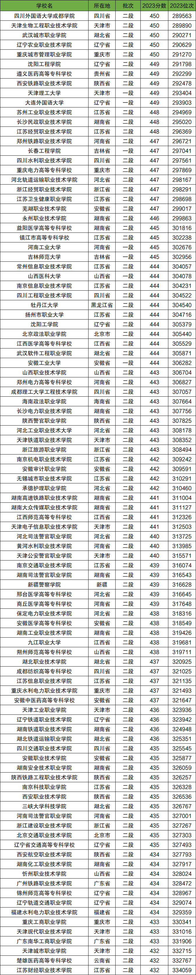 以下为2023年在山东省400到450分的全国大学名单(山东省以外)。