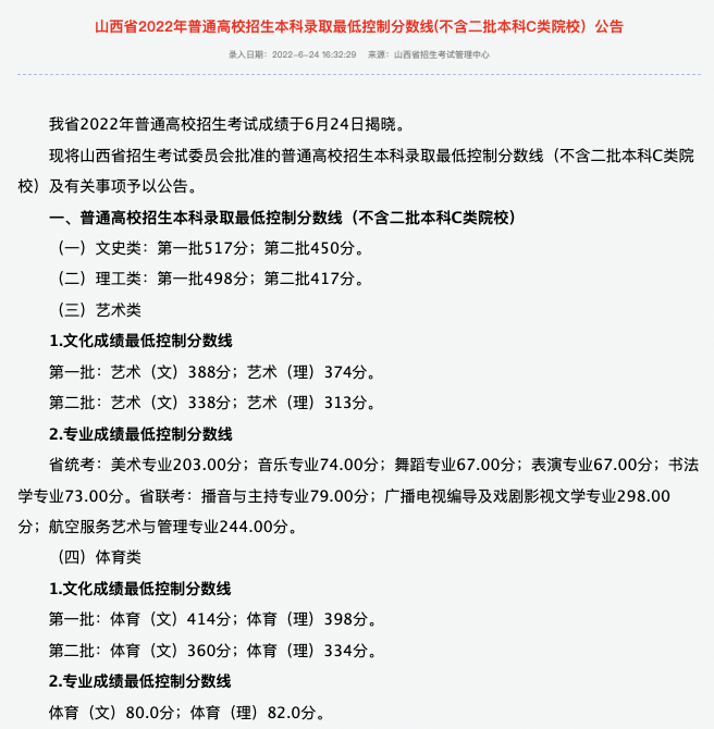 本科二批:理科344分,文科400分;