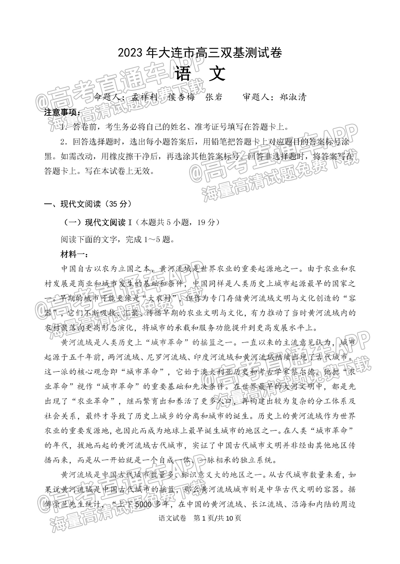 2023大连高三双基考试考试将于12月29日开考,本次的考试科目一共有九门,这五门分别是语文、数学、英语、物理、化学、生物、政治、历史、地理。以下是所有的试卷及答案解析,详情如下: