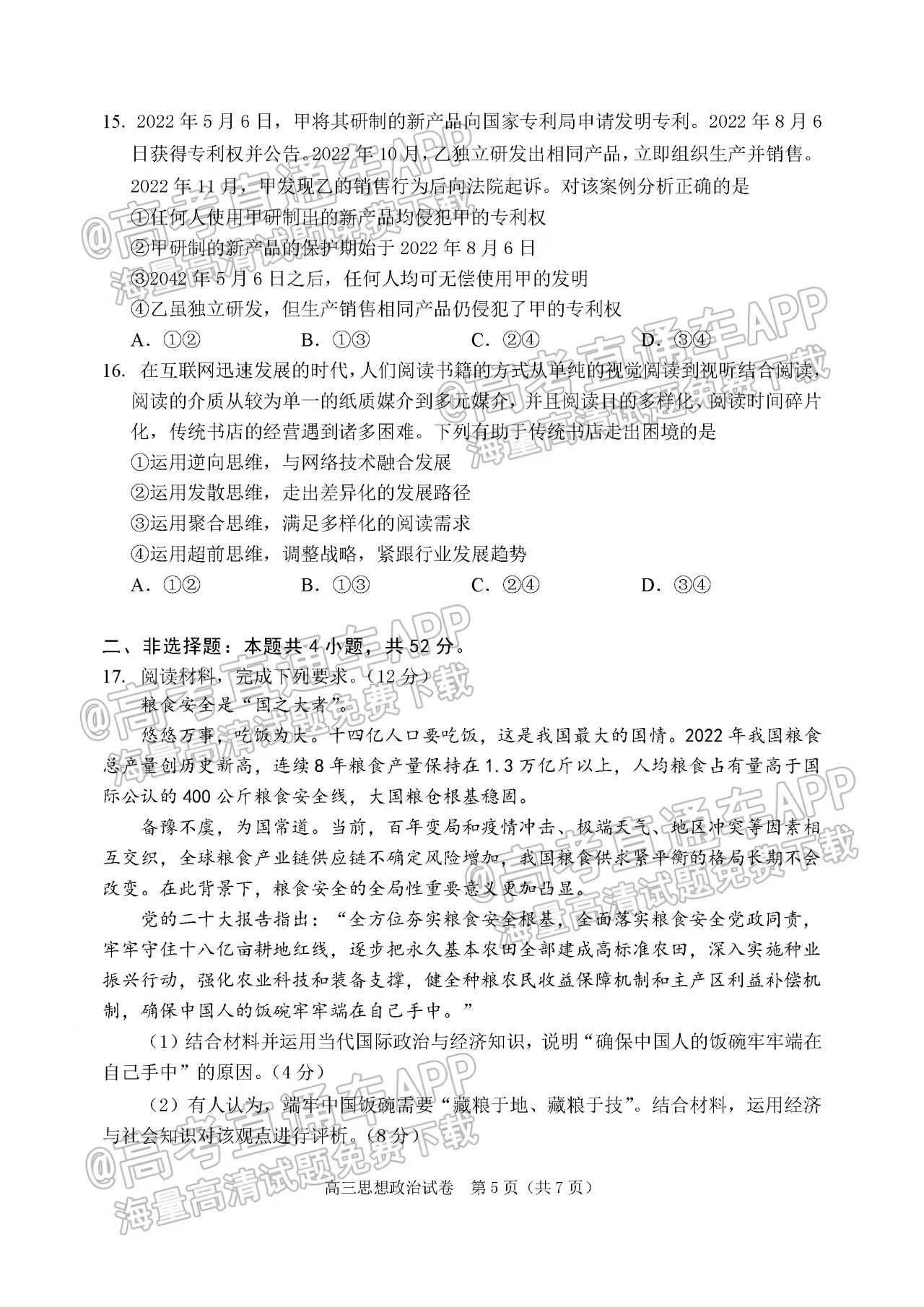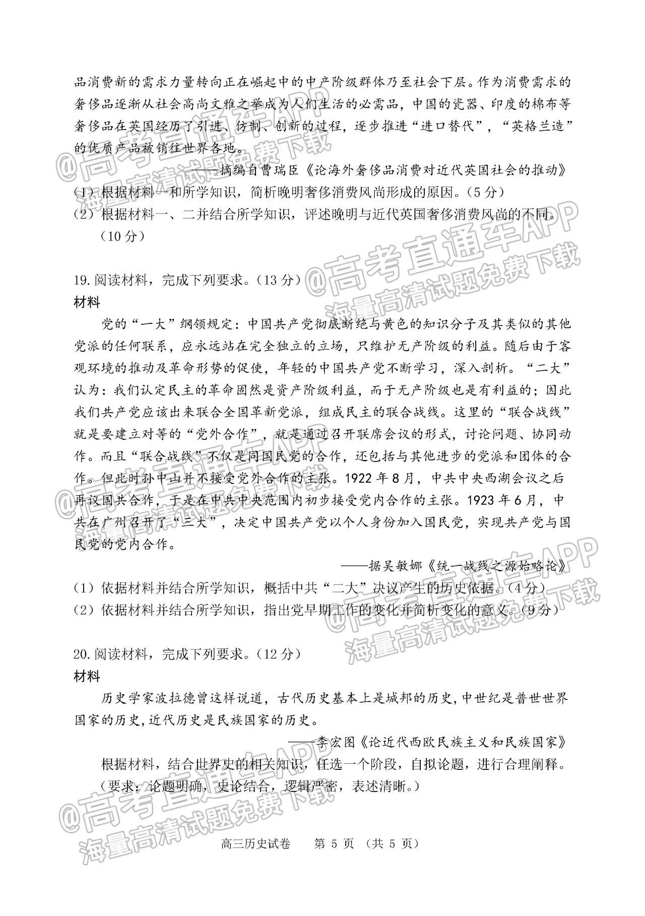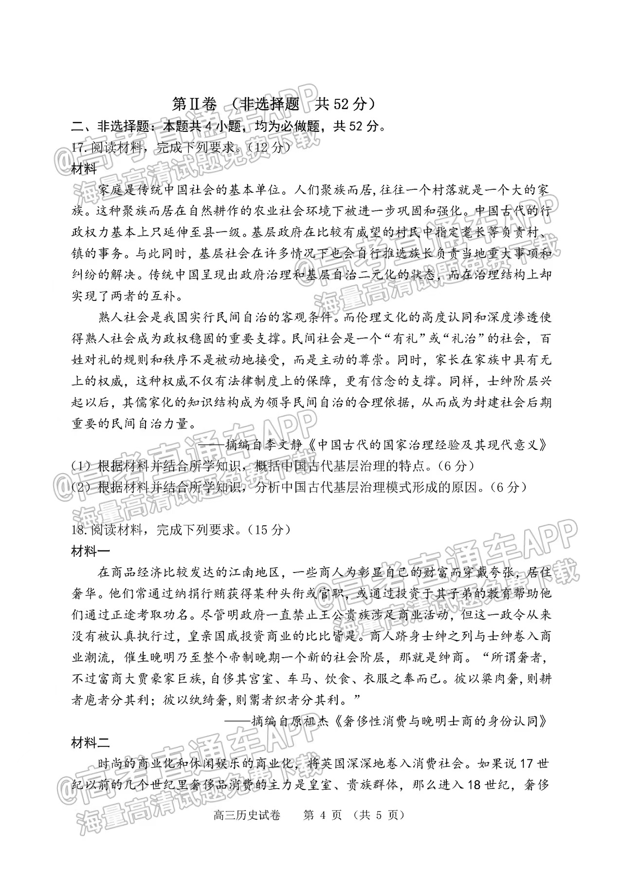 八、2023辽宁大连高三双基测试历史试卷及答案