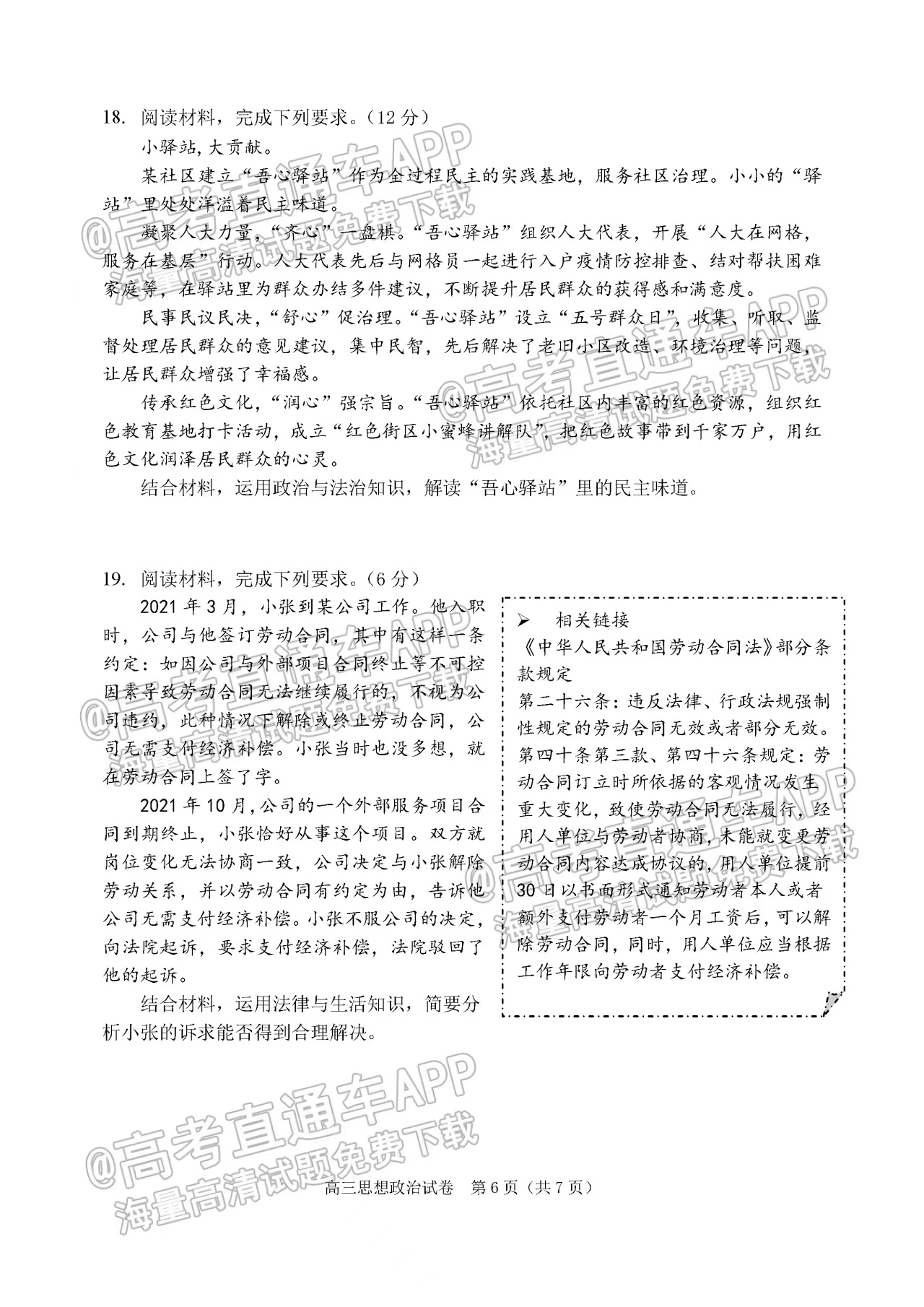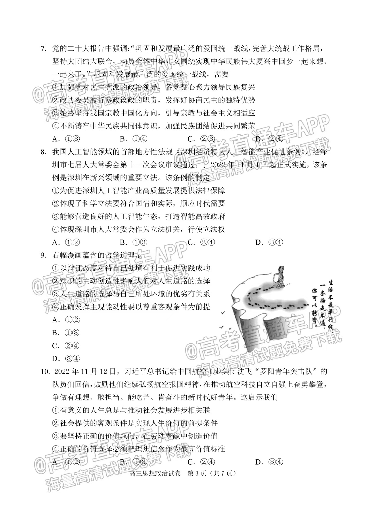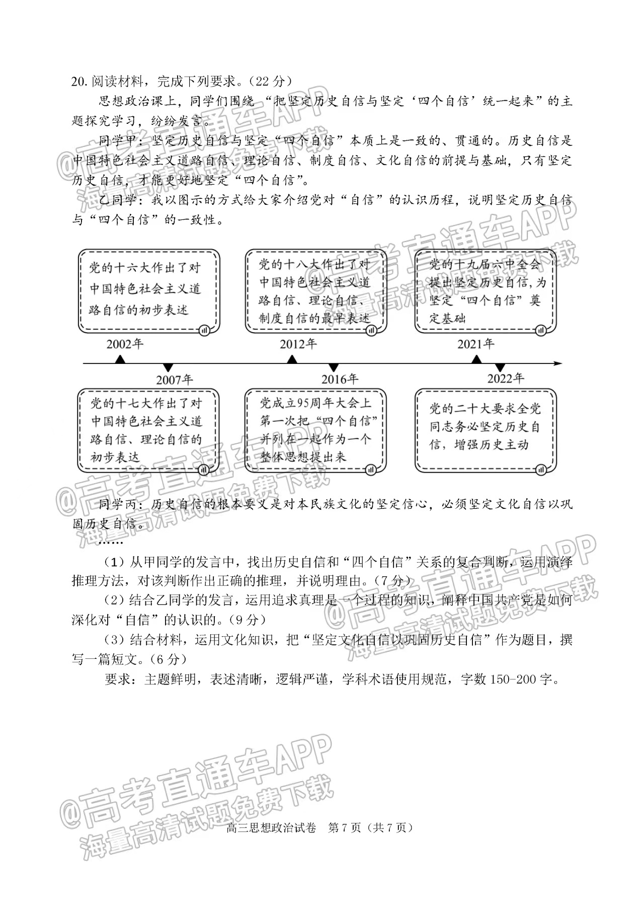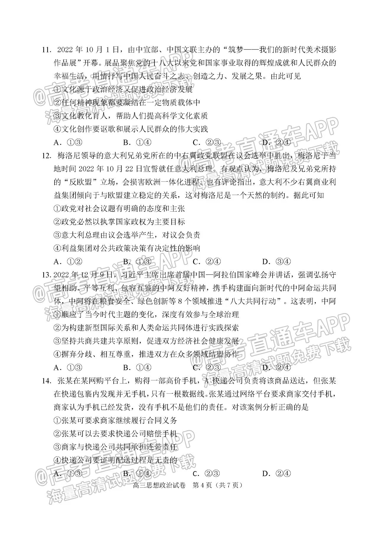 八、2023辽宁大连高三双基测试历史试卷及答案