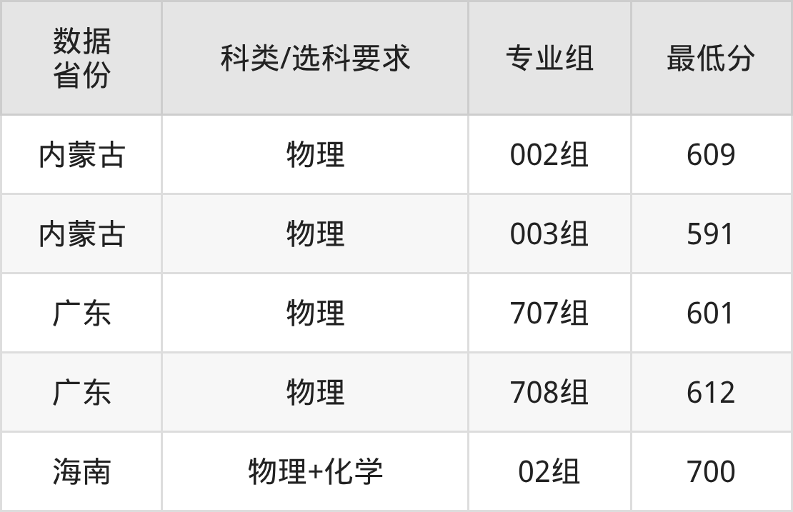 (2)大学专业类地区:最低498分
