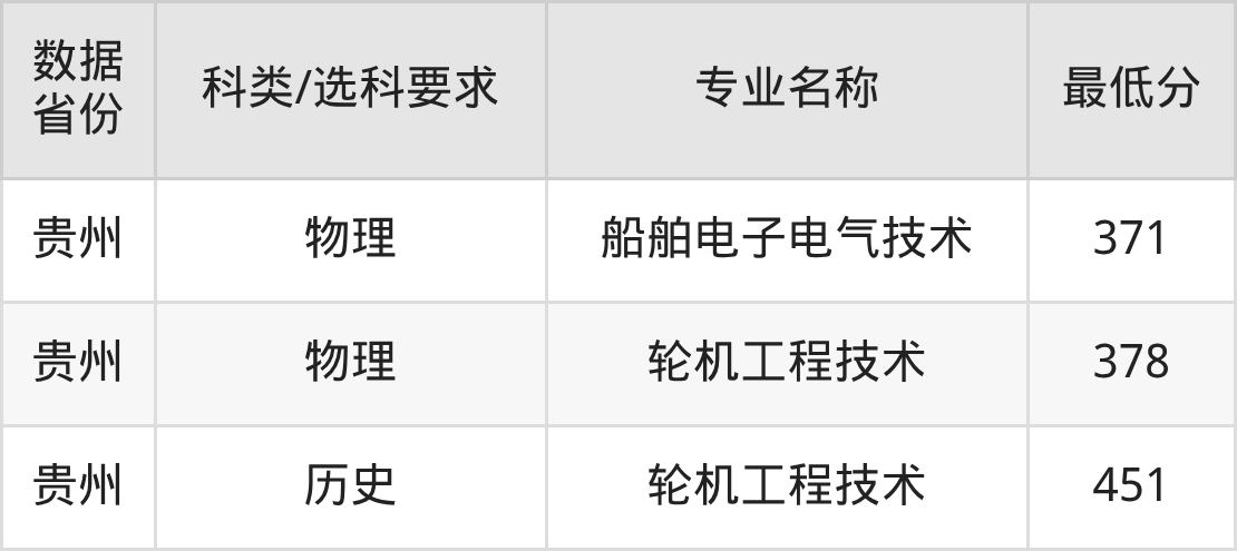 船舶电子电气技术(物理类371分)、轮机工程技术(物理类378分、历史类451分)。