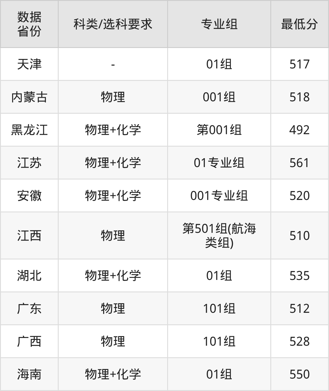 (2)大学专业类地区:最低494分