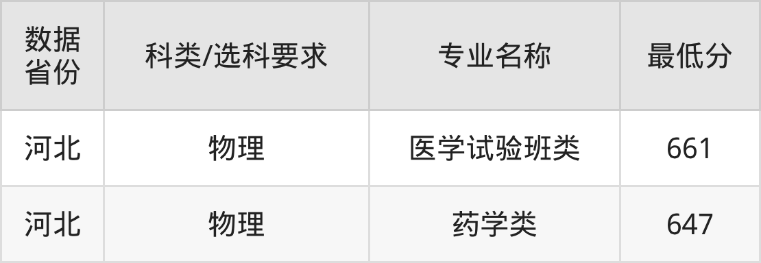 医学试验班类661分、药学类647分。