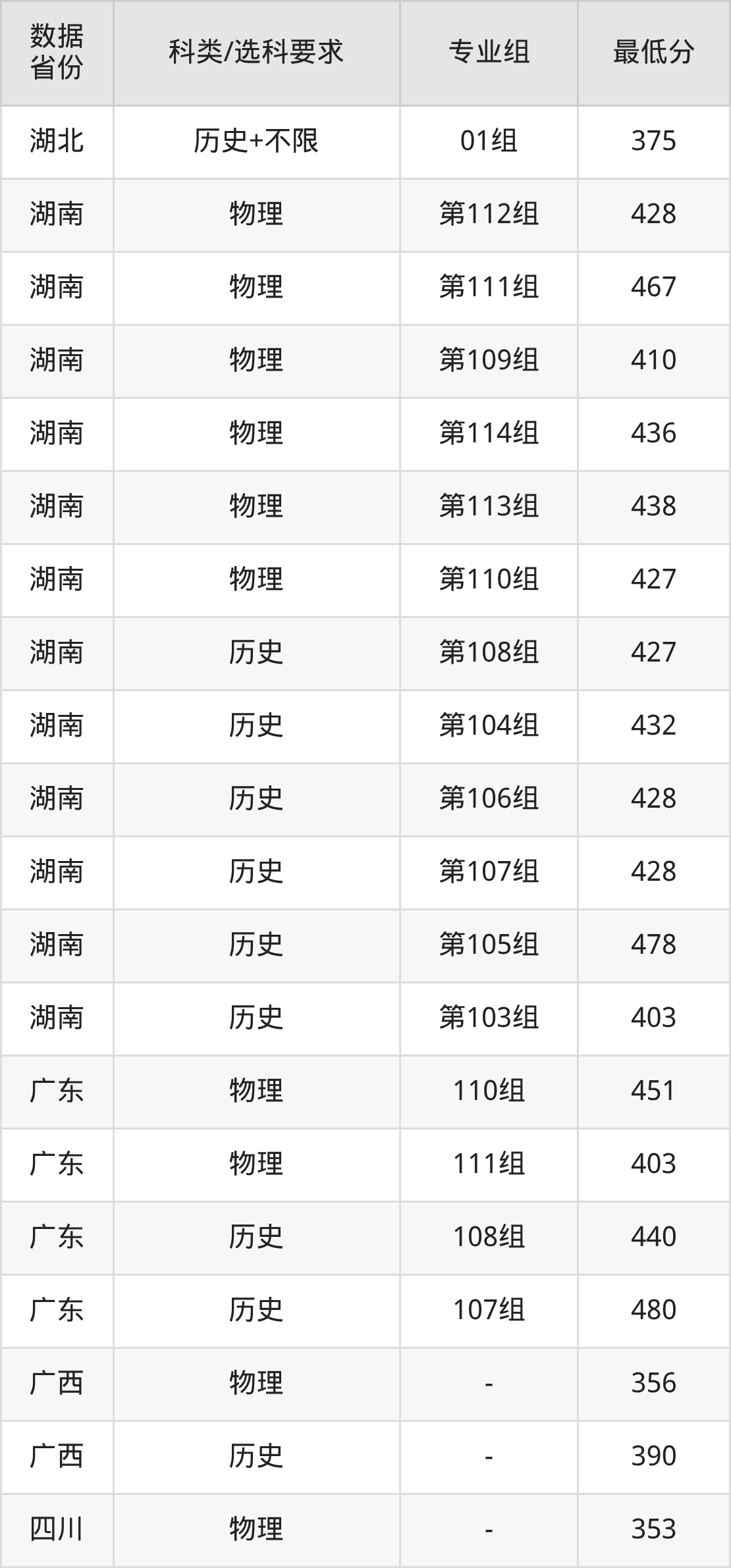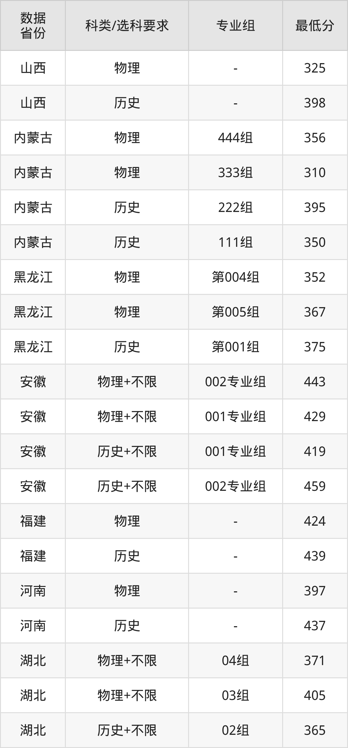 (2)大学专业类地区:最低202分