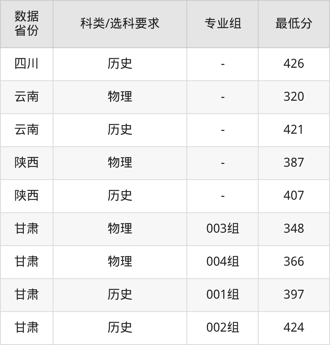 参考福建省,各专业最低分数线是: