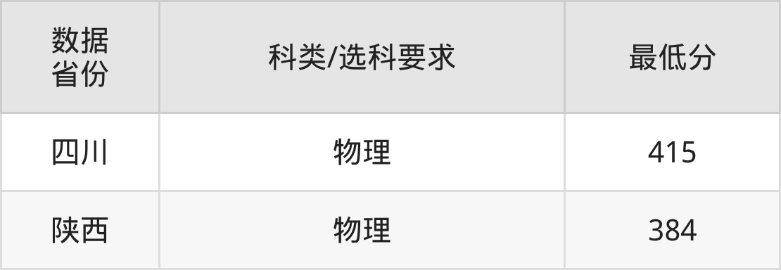 参考四川省,各专业最低分数线是: