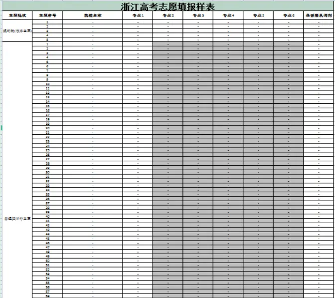 2025年浙江高考志愿样表暂未公布,本文先整理出2024年样表,供参考。