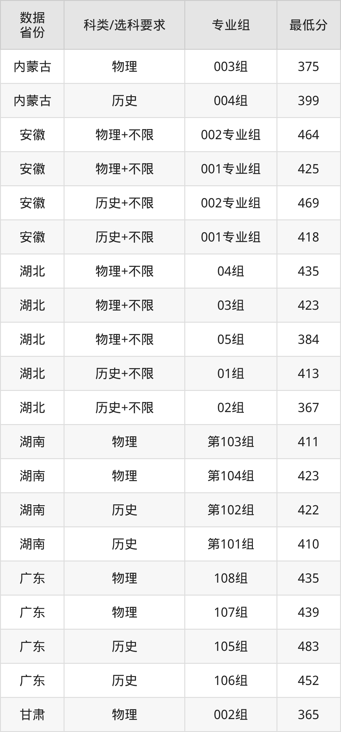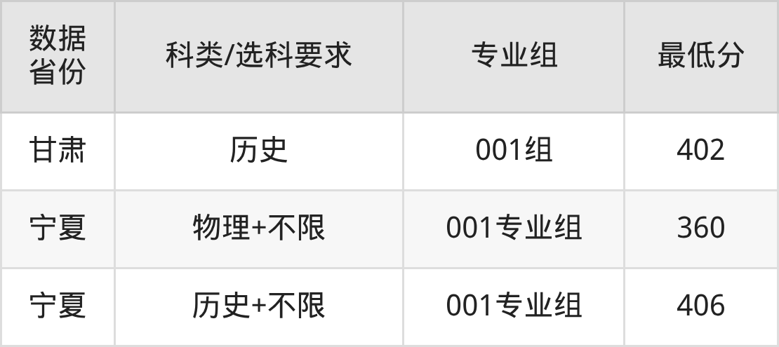 (2)大学专业类地区:最低361分