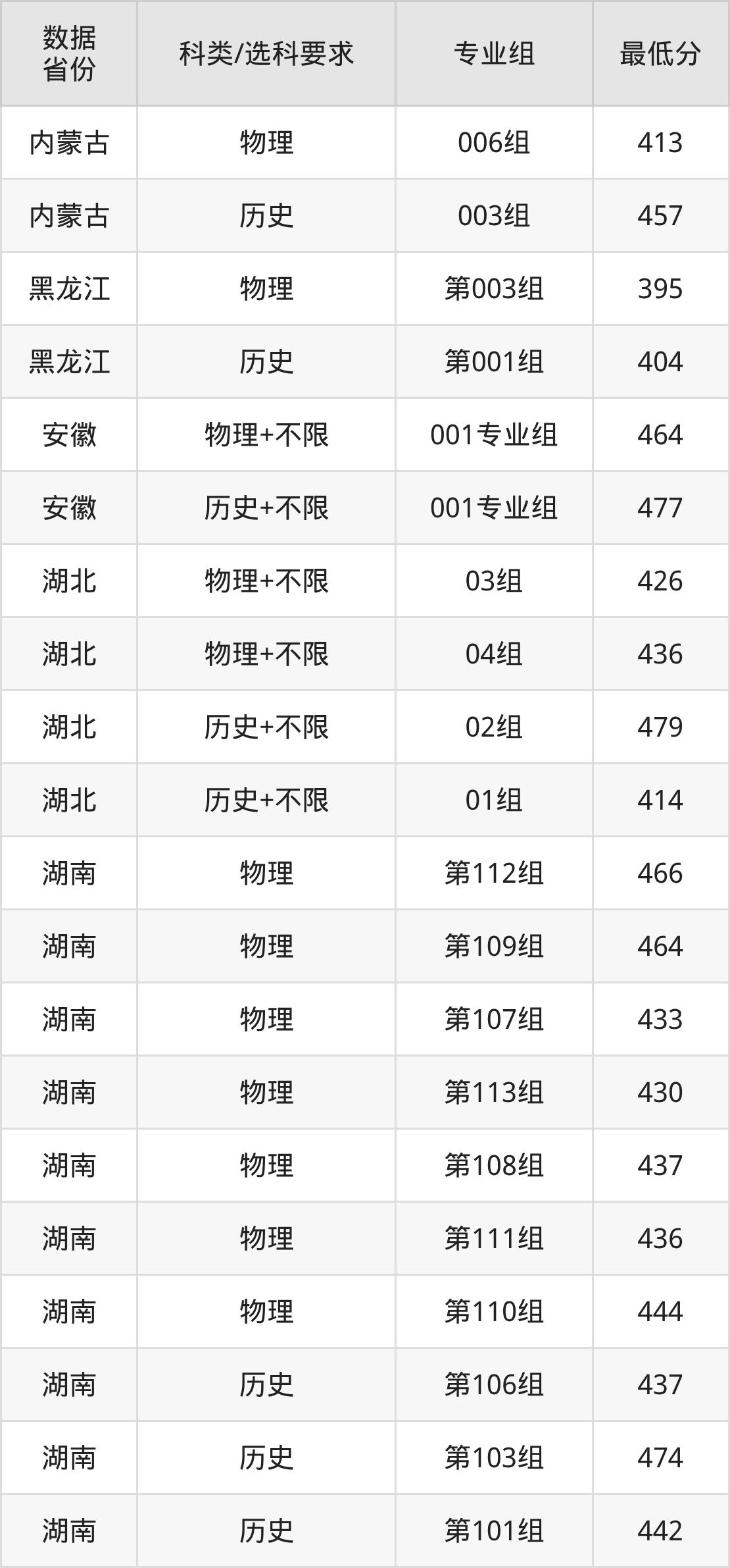 (2)大学专业类地区:最低359分