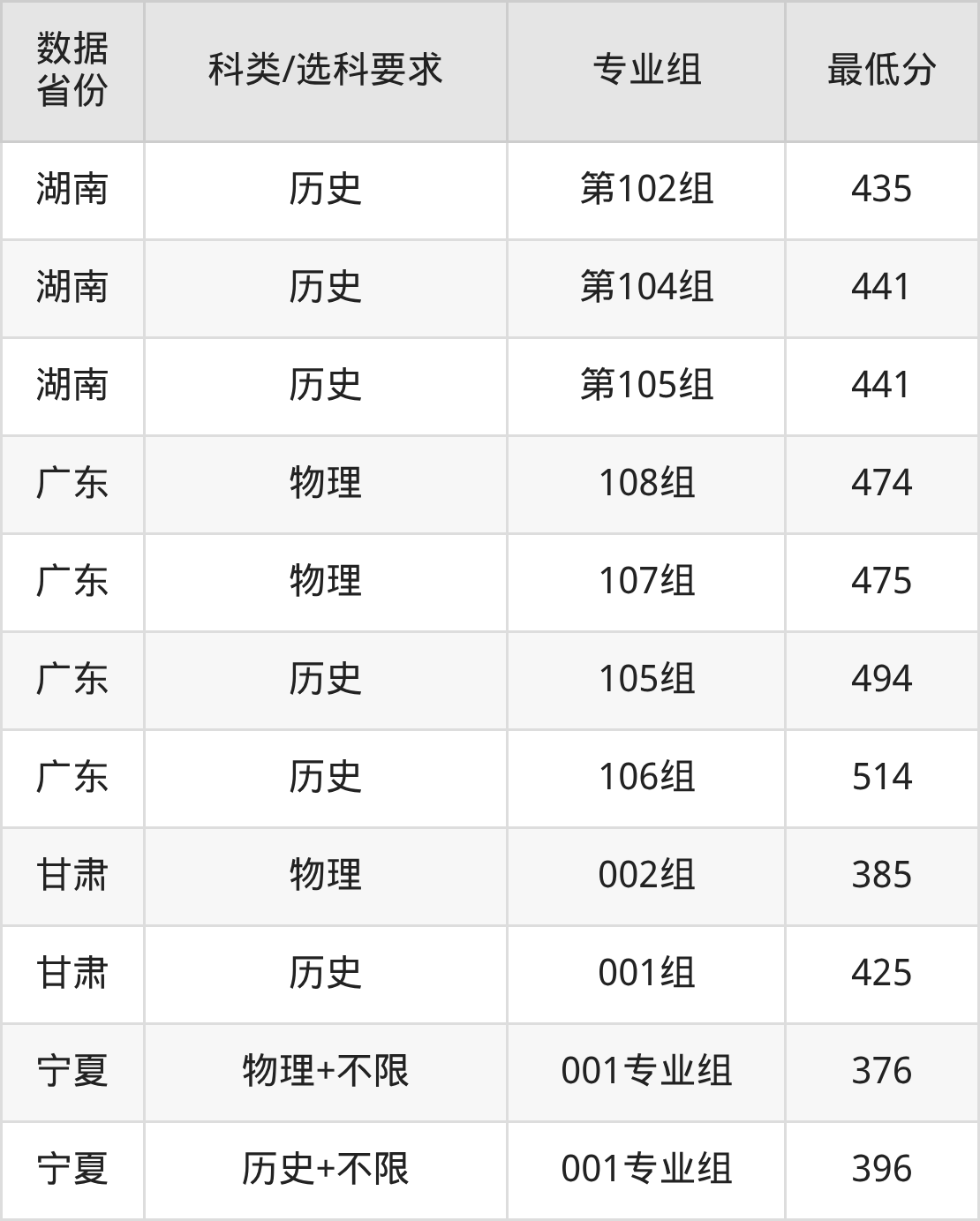 (1)院校专业组地区:最低376分