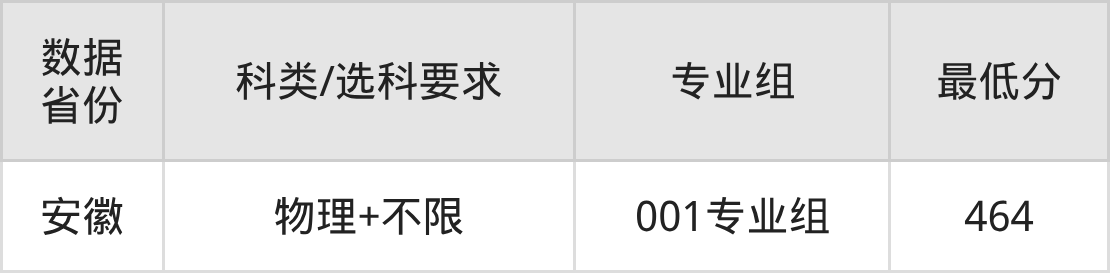 (1)院校专业组地区:最低464分