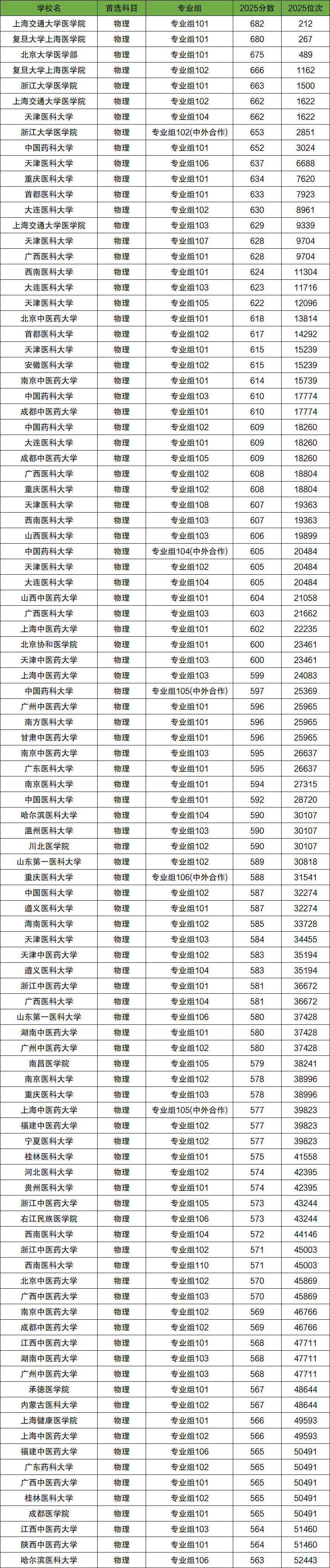下面是2025全国医科大学在四川物理类招生前100名专业组的录取分数线一览表