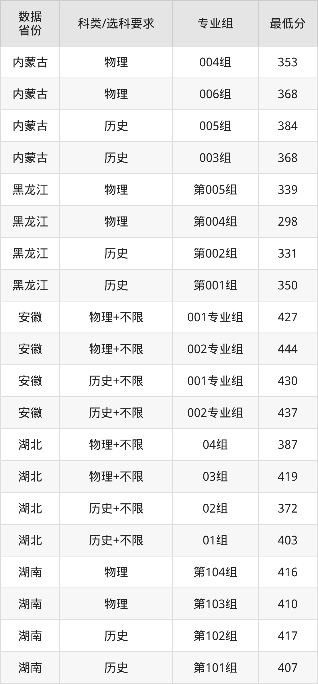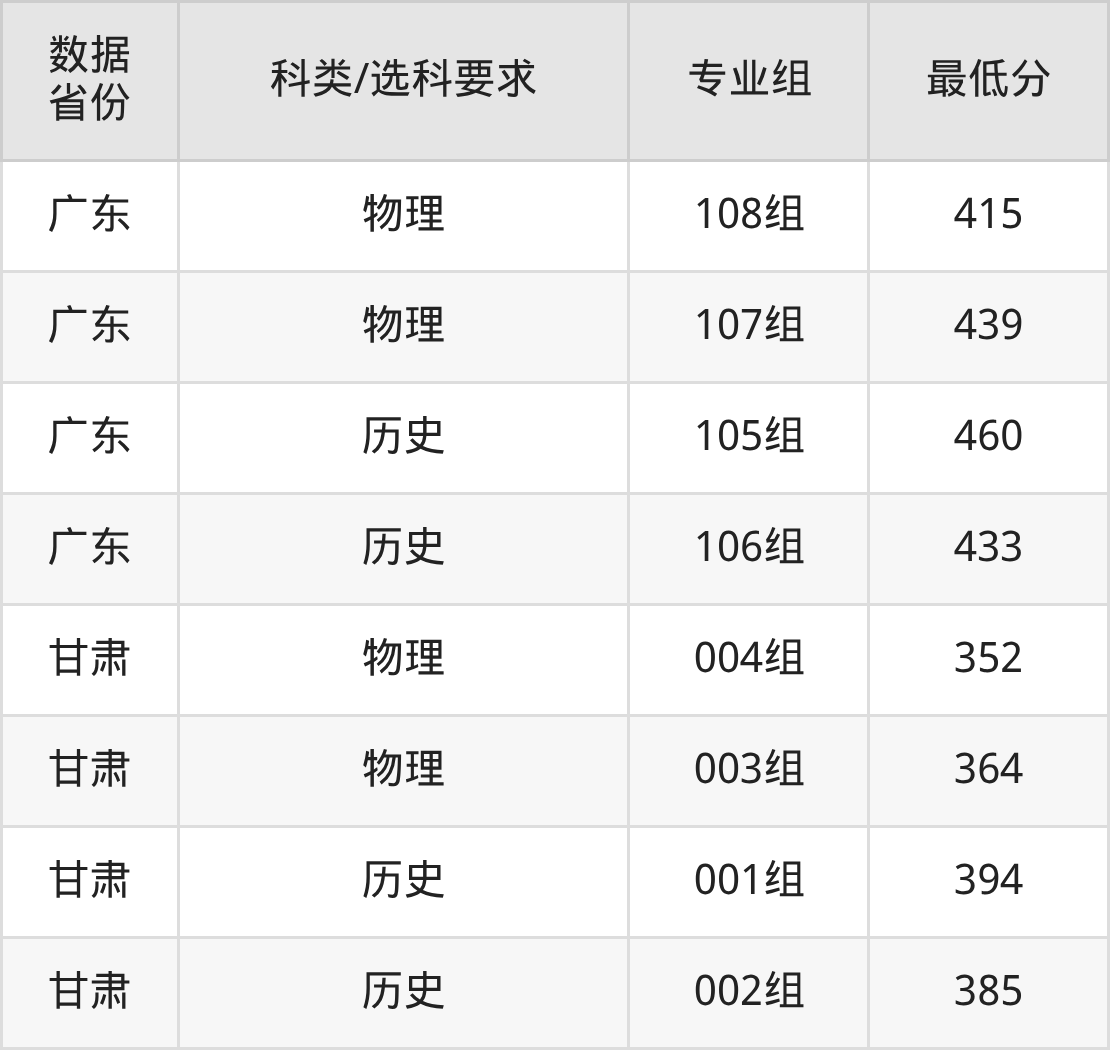 (2)大学专业类地区:最低328分