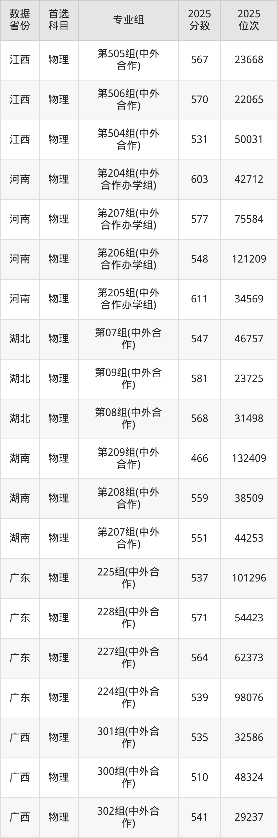 长春理工大学中外合作办学专业包括光电信息科学与工程、应用物理学、测控技术与仪器、电子科学与技术、生物工程。长春理工大学中外合作办学专业2025年在各省的最低分数线是466分到611分,收分最低在湖南、收分最高在天津。