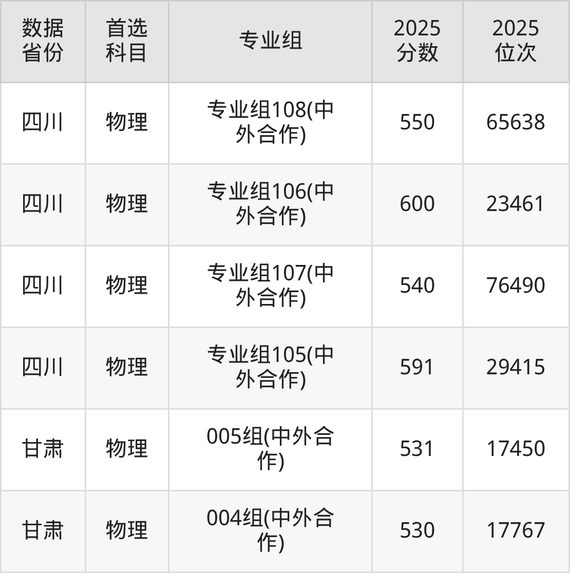 (2)大学专业类地区:最低490分