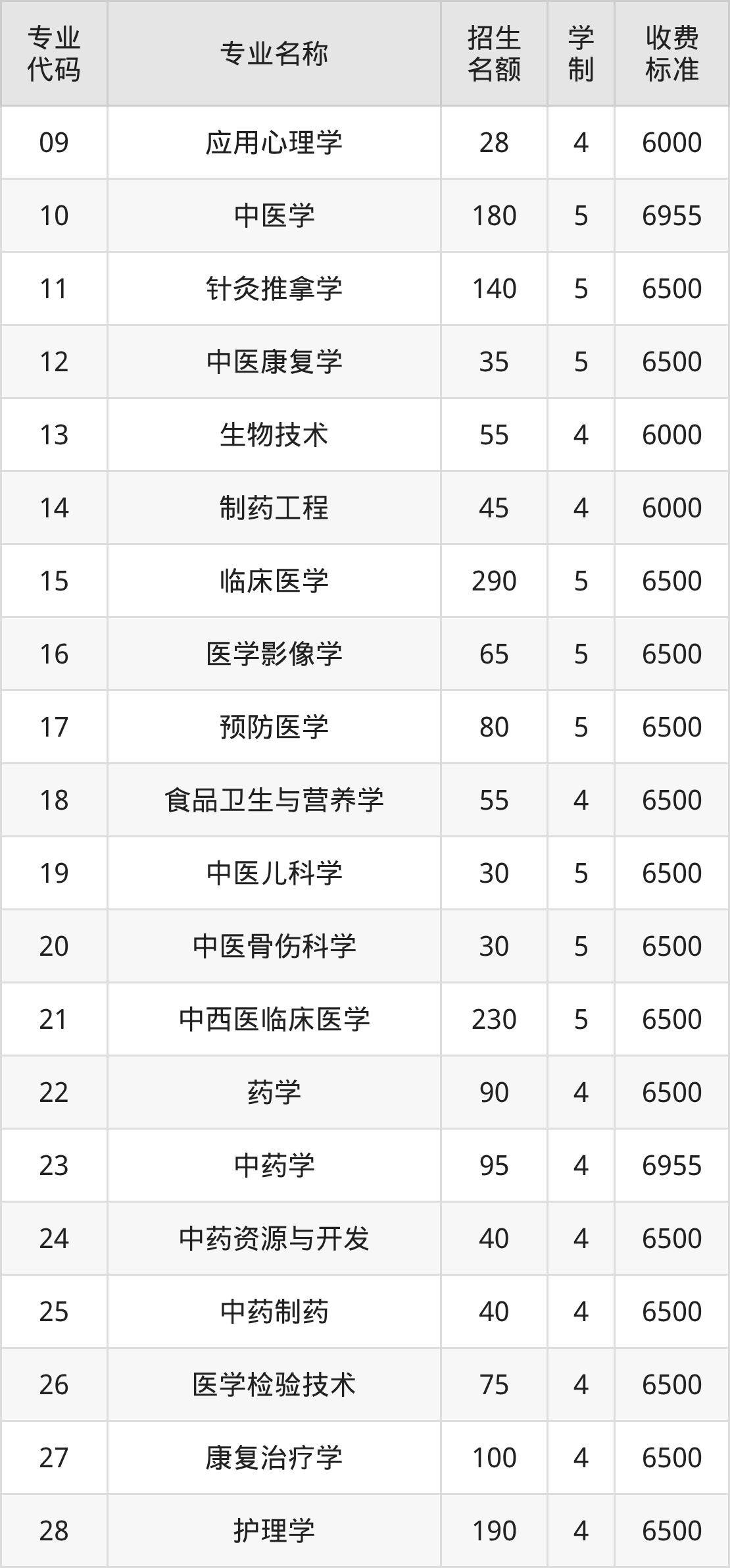 | 03 | 中医学 | 45 | 5 | 6955 |