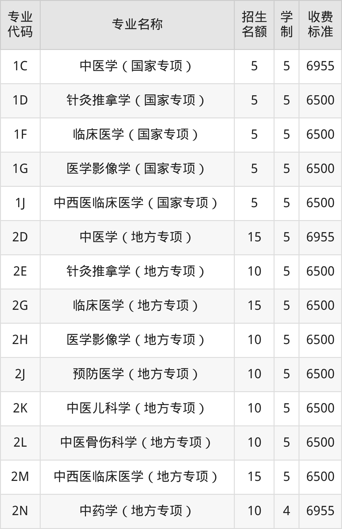 | 1A | 中医学(国家专项) | 5 | 5 | 6955 |