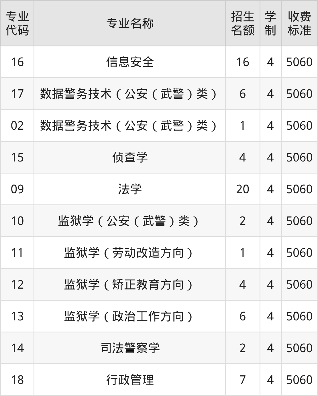 | 05 | 监狱学(政治工作方向) | 4 | 4 | 5060 |