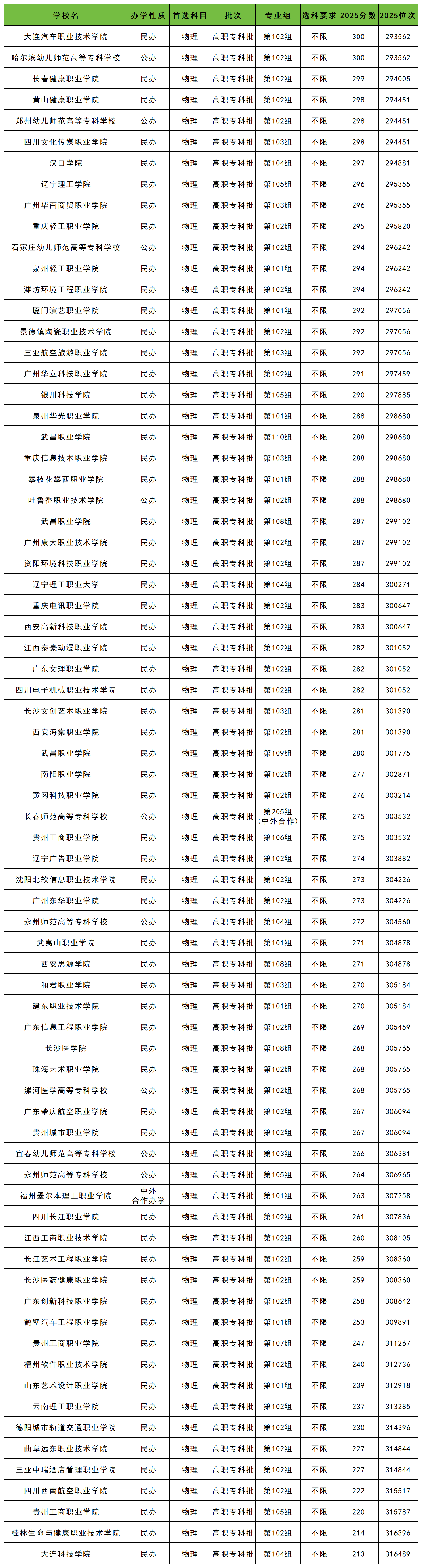 物理类高考200-300分能上的大学全部为专科院校,不过多数为民办院校。
