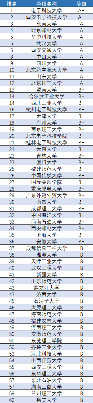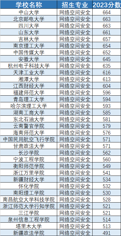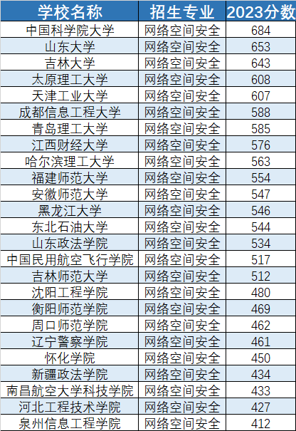 以下是2023年软科网络空间安全专业B等级以上院校名单(供参考,图片可滑动查看):