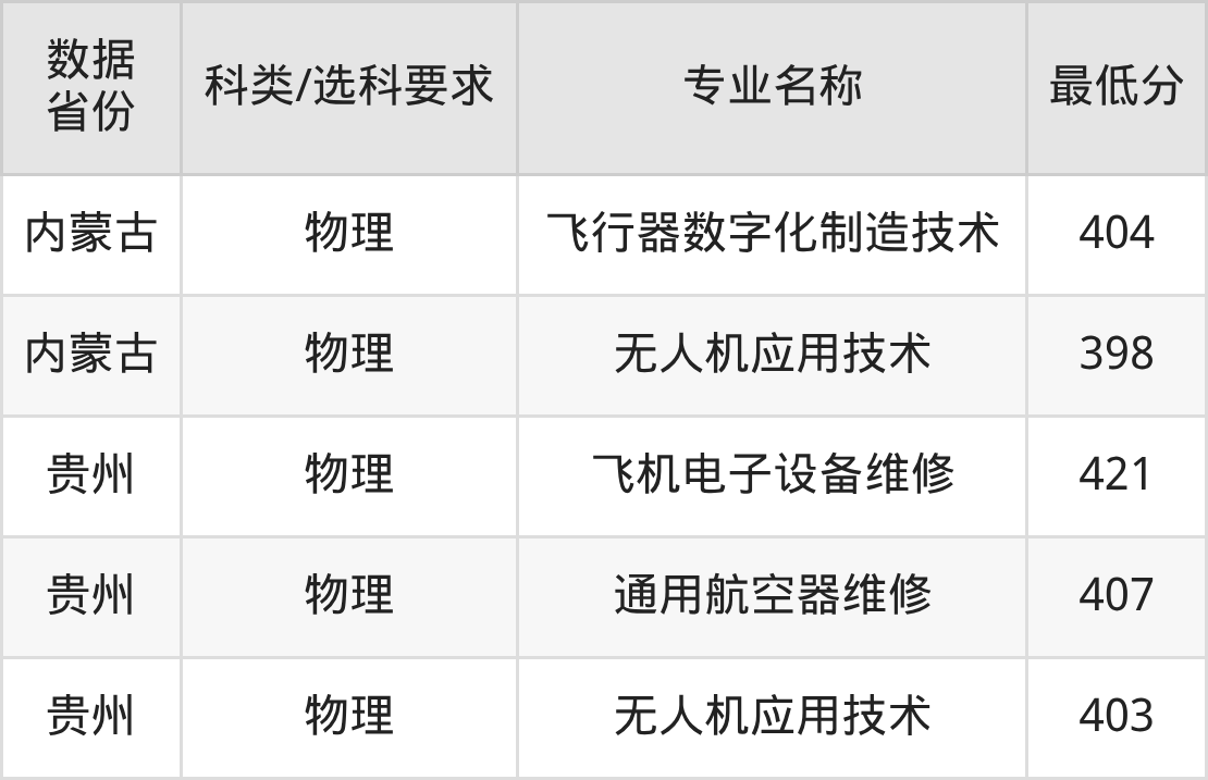 飞机电子设备维修421分、通用航空器维修407分、无人机应用技术403分。