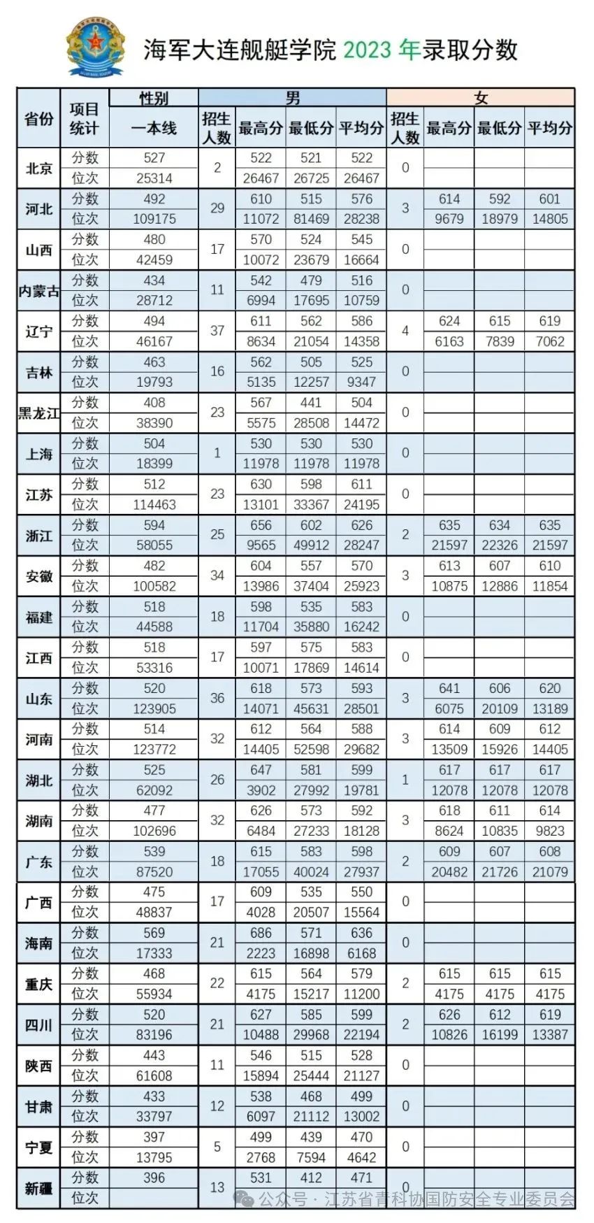 | 海军大连舰艇学院 | 物理 | 男 | 567 |