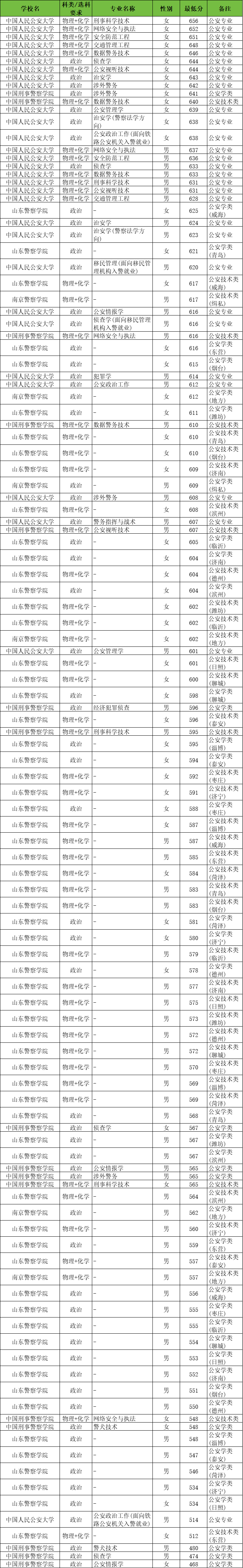 2024年在山东招收女生的学校只有4所院校,涉及到14个专业,其中收分最高的是中国人民公安大学刑事科学技术,2024年的最低分数线为656分;收分最低的是中国刑事警察学院公安情报学,2024年的最低分数线为468分。