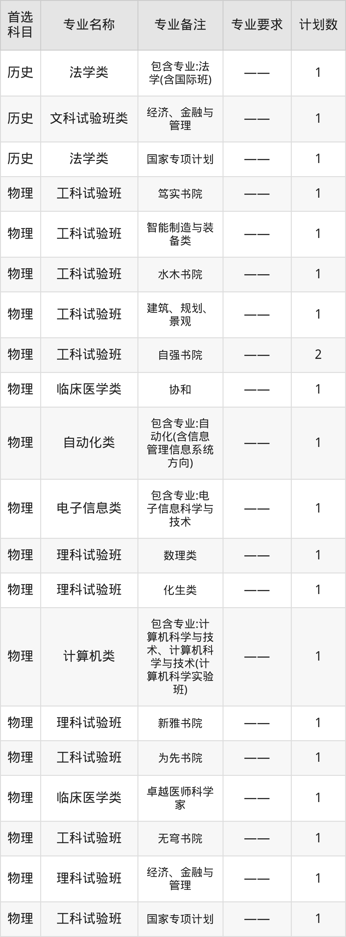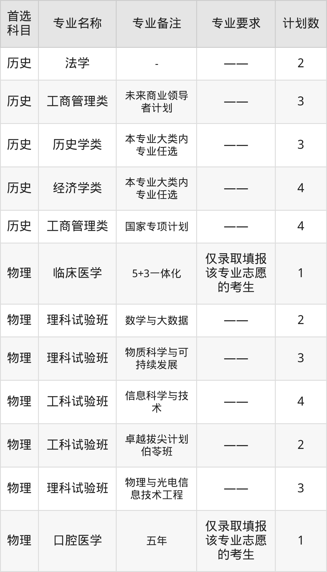 2025年南开大学在宁夏招生人数是32人,招生专业包括法学、工商管理类、历史学类、经济学类、临床医学、理科试验班、工科试验班、口腔医学。具体如下图所示: