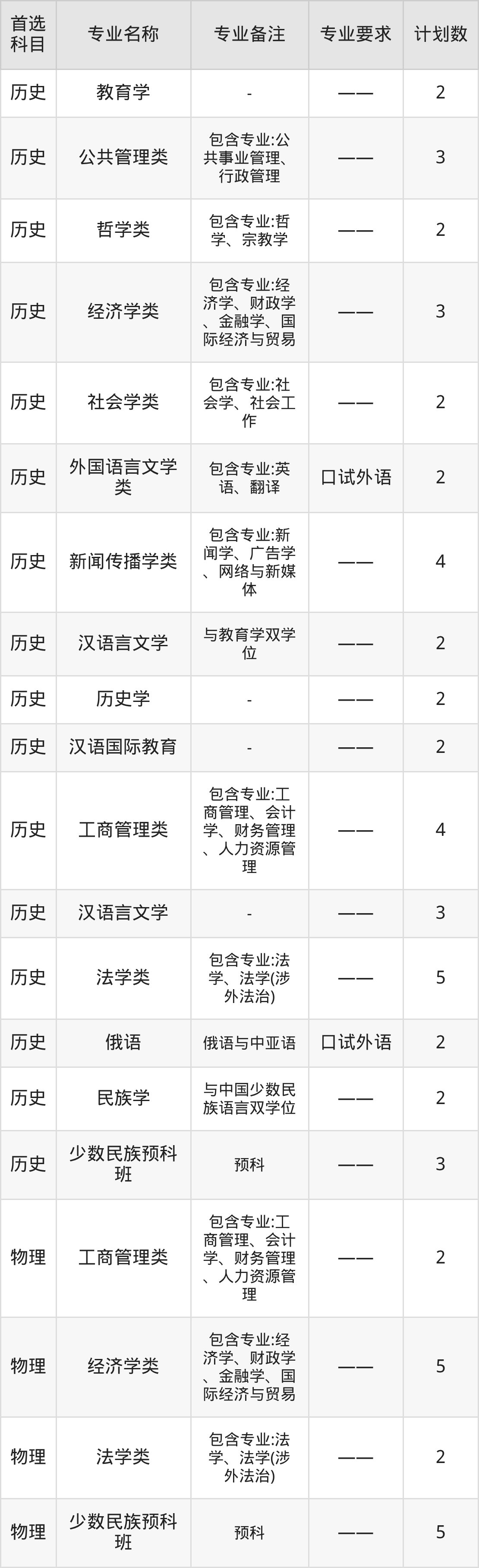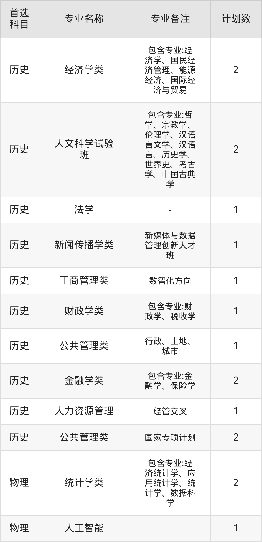 2025年北京大学在宁夏招生人数是25人,招生专业包括法学、文科试验班类、中国语言文学类、公共管理类、社会学类、新闻传播学类、经济学类、工商管理类、城乡规划、数学类等。具体如下图所示: