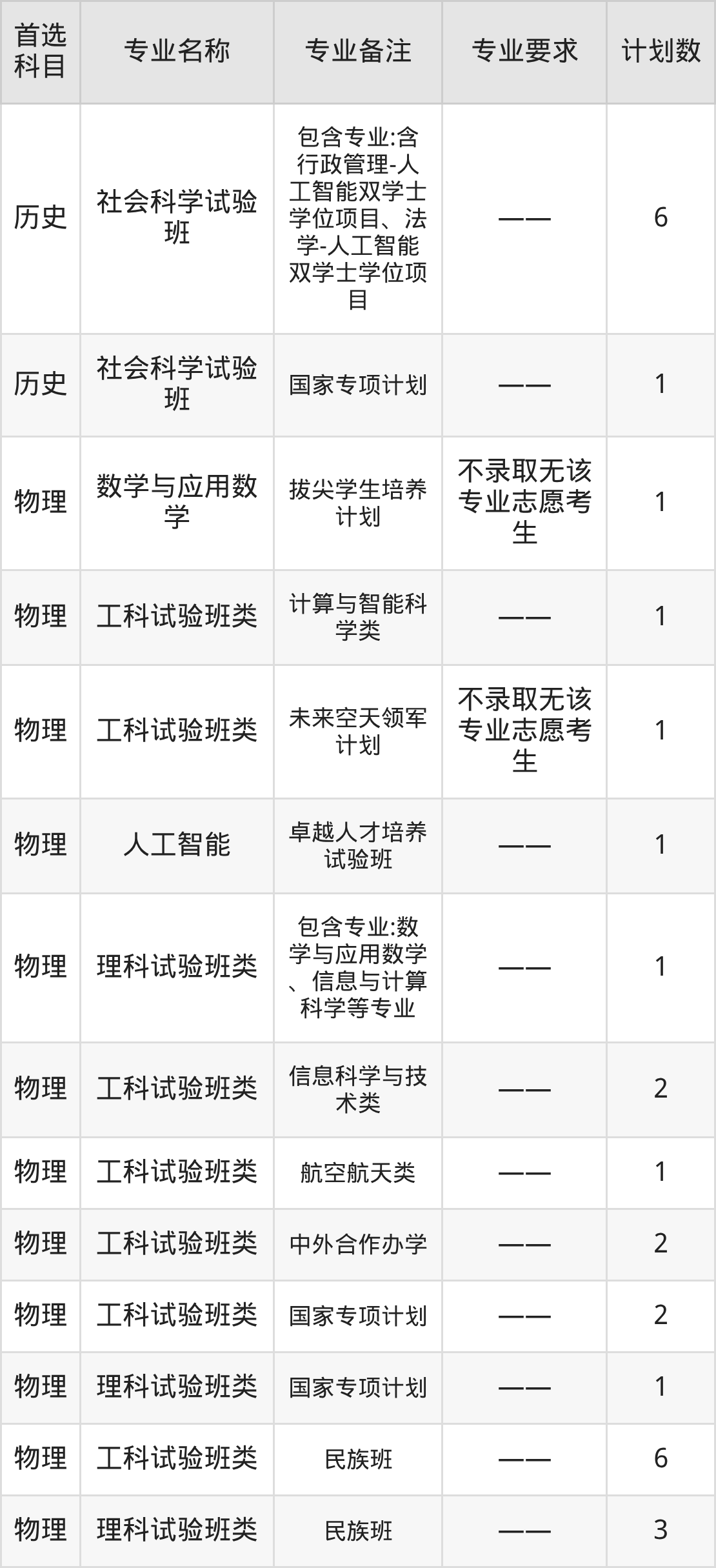 2025年北京航空航天大学在宁夏招生人数是29人,招生专业包括社会科学试验班、数学与应用数学、工科试验班类、人工智能、理科试验班类。具体如下图所示: