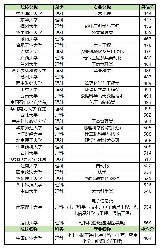 如果理科生分数在480分以下,建议报考:中国海洋大学、东华大学、福州大学、华中师范大学、湖南大学。