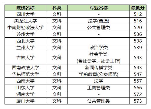 如果文科生分数在530分以下,建议报考:四川大学、黑龙江大学、中南财经政法大学。