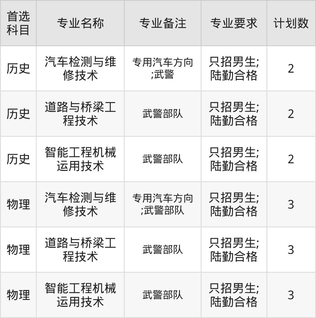 2025年辽宁省交通高等专科学校在湖南招生人数是15人,招生专业包括汽车检测与维修技术、道路与桥梁工程技术、智能工程机械运用技术。具体如下图所示: