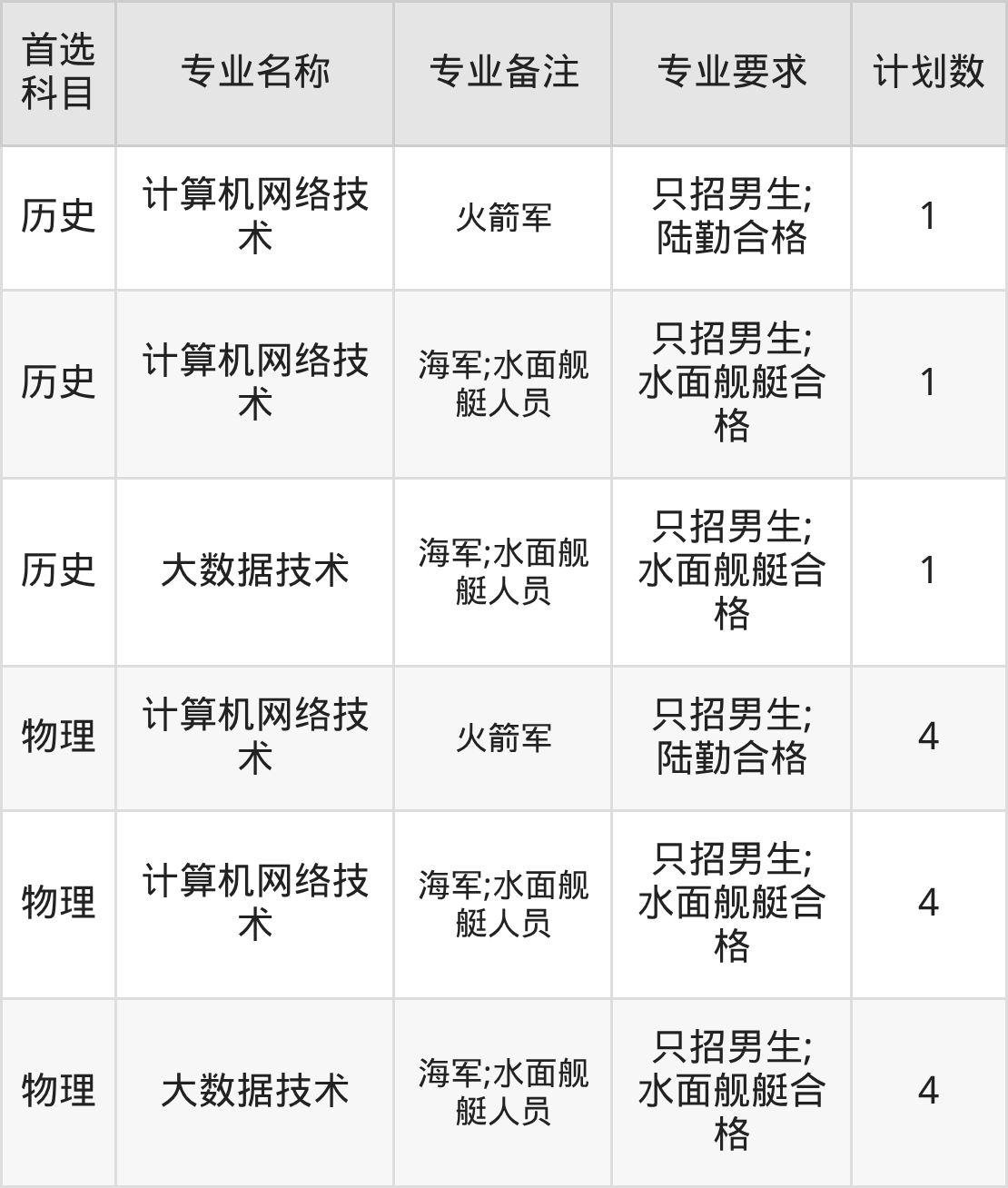 2025年南京信息职业技术学院在湖南招生人数是15人,招生专业包括计算机网络技术、大数据技术。具体如下图所示: