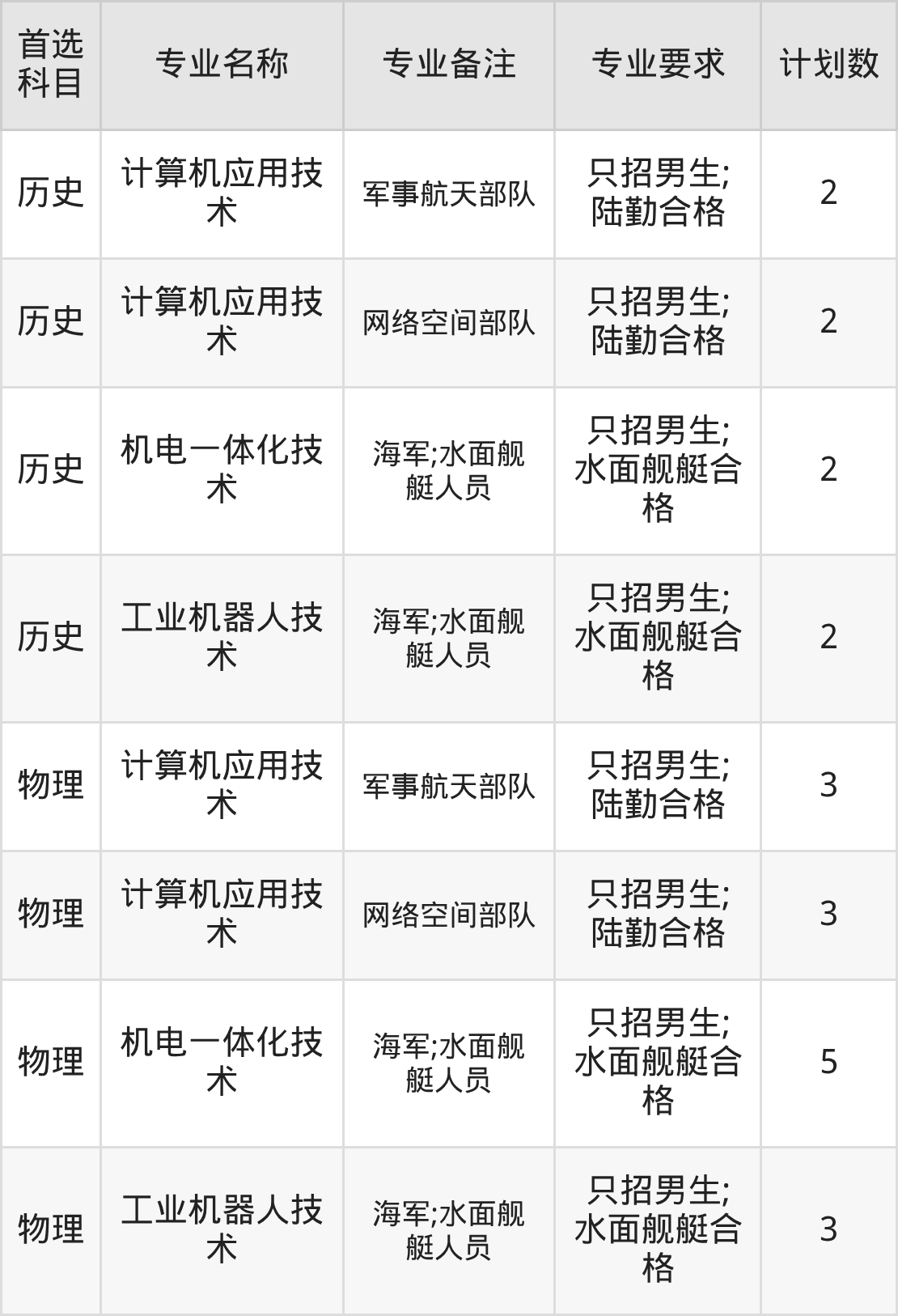 2025年泰山职业技术学院在湖南招生人数是22人,招生专业包括计算机应用技术、机电一体化技术、工业机器人技术。具体如下图所示: