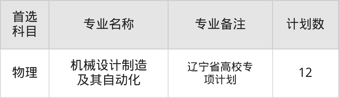 2025年大连大学在辽宁招生人数是12人,招生专业包括机械设计制造及其自动化。具体如下图所示: